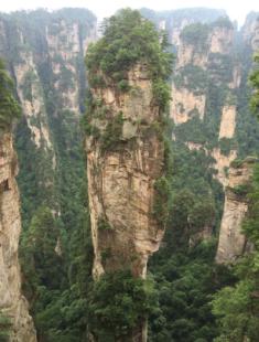 8日早上,我們乘坐“世界第一梯”——百龍?zhí)焯葜猎医绶屙敚@里是舉世聞名,奇特罕見的砂巖地貌。舉目遠(yuǎn)望,三千奇峰盡收眼底,怪石嶙峋,星羅棋布,雄險秀野,神態(tài)各異。峽谷深處,千百根石峰石柱奇?zhèn)ネ涣ⅰ>椭缬⑽鋵洠会隙胫澹朴旅蛪咽俊L鞖怅幊粒缕鹦∮辏藭r,峰谷內(nèi)云翻霧涌,數(shù)座山峰如中流砥柱巋然屹立于云霧之中,云海淼淼,如入蓬萊仙境,那里面一定住著神仙吧。