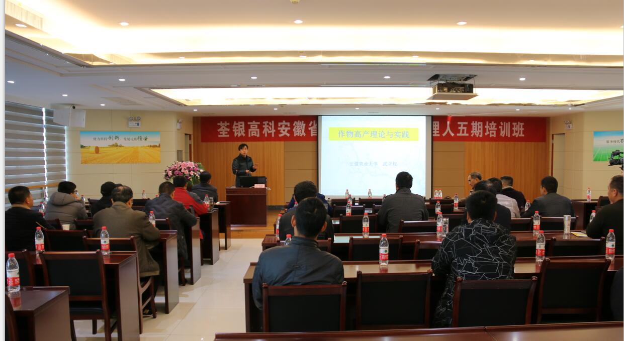 2017年11月27日,安徽省首屆農業(yè)職業(yè)經理人第五期培訓班在荃銀高科六樓多功能廳正式開課。來自全省各地的50位從事糧油種植的家庭農場主、農業(yè)合作社及農業(yè)企業(yè)負責人參加了培訓。