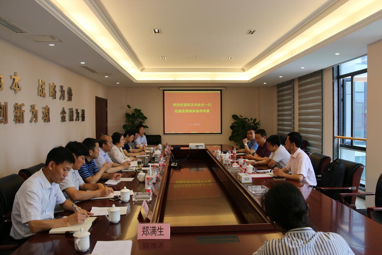 ??? 2018年5月29日,農業農村部科教司高新技術處處長何藝兵帶隊,全國農技推廣服務中心處長邱軍、中國農業科學院科技局處長林克劍、科教司項目專員吳圣勇博士蒞臨荃銀高科調研指導。安徽省種子管理總站副站長汪社寬、主任科員朱國邦,安徽荃銀高科董事長張琴、副董事長陳金節、副總經理張從合、朱全貴等參加調研座談會。