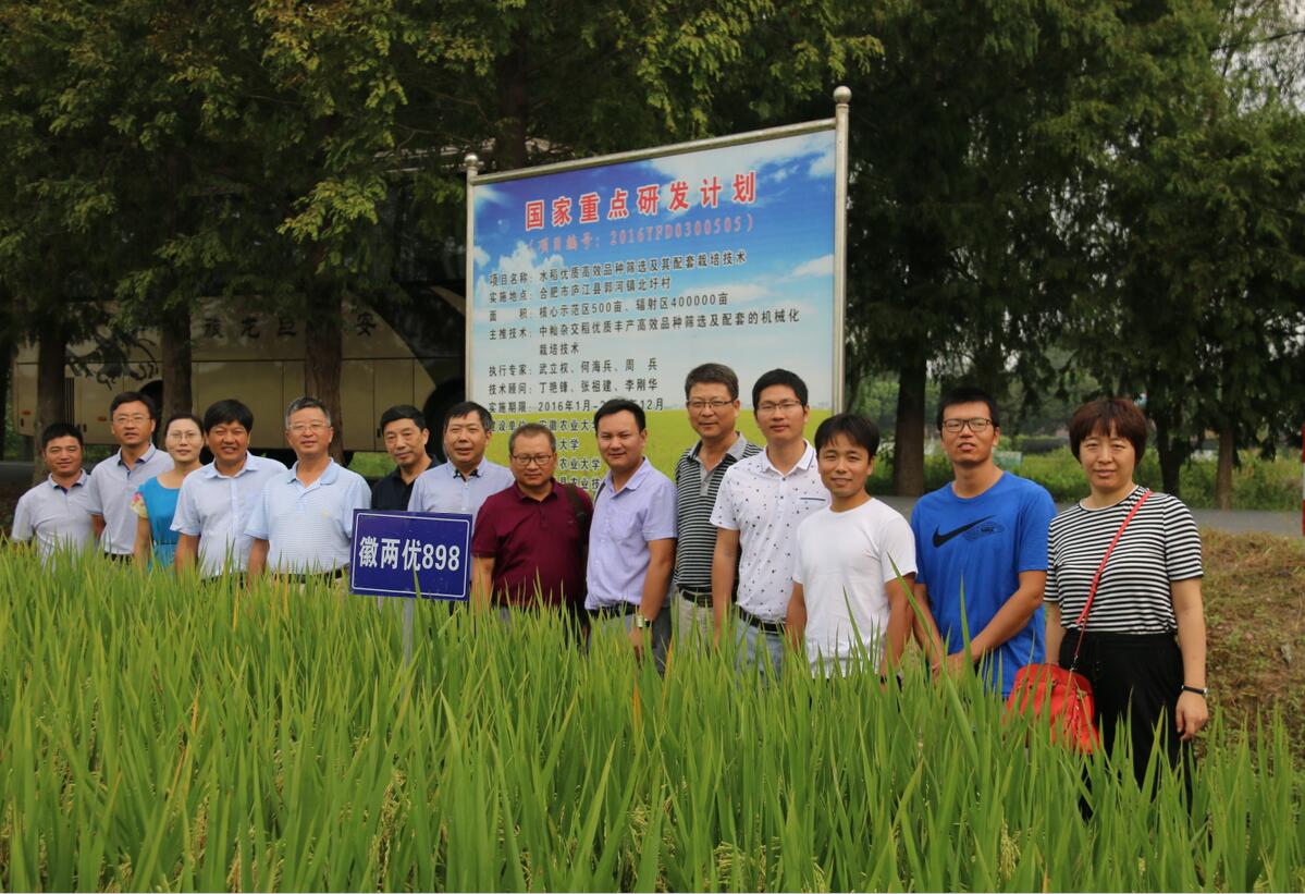 ??? 10日上午,在廬江縣郭河和蜀山區南崗舉辦的聯盟成果展示會上,主要展示了聯盟單位間合作選育的優勢水稻新品種及新材料。在今年高溫、臺風等劇烈天氣影響下,品種的表現良好,尤其是聯盟單位合作選育的秈粳交水稻品種中禾優1號表現突出,獲得參會專家的一致好評。