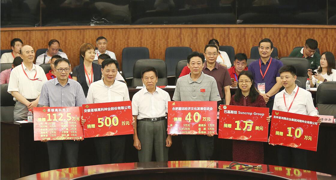善人者,人亦敬之。張海銀種業(yè)基金會五年來的公益慈善活動得到社會各界愛心人士和愛心單位600余次的的慷慨捐贈,累計950多萬元。會上還進(jìn)行了基金會2018年公益愛心捐贈儀式。荃銀高科母子公司高管和員工多次參與基金會濟(jì)困助學(xué)公益慈善活動,本次捐贈112.5萬元;吉林鴻翔種業(yè)集團(tuán)鴻翔種業(yè)有限公司捐贈10萬元;巴基斯坦Suncrop Group(陽光作物集團(tuán))捐贈1萬美元;合肥霍邱經(jīng)濟(jì)文化發(fā)展促進(jìn)會及會員為基金會貧困助學(xué)項目捐贈40萬元;安徽荃銀高科種業(yè)股份有限公司捐贈500萬元。基金會將按捐贈人捐贈的意愿和在業(yè)務(wù)范圍內(nèi)開展公益項目和慈善活動。
