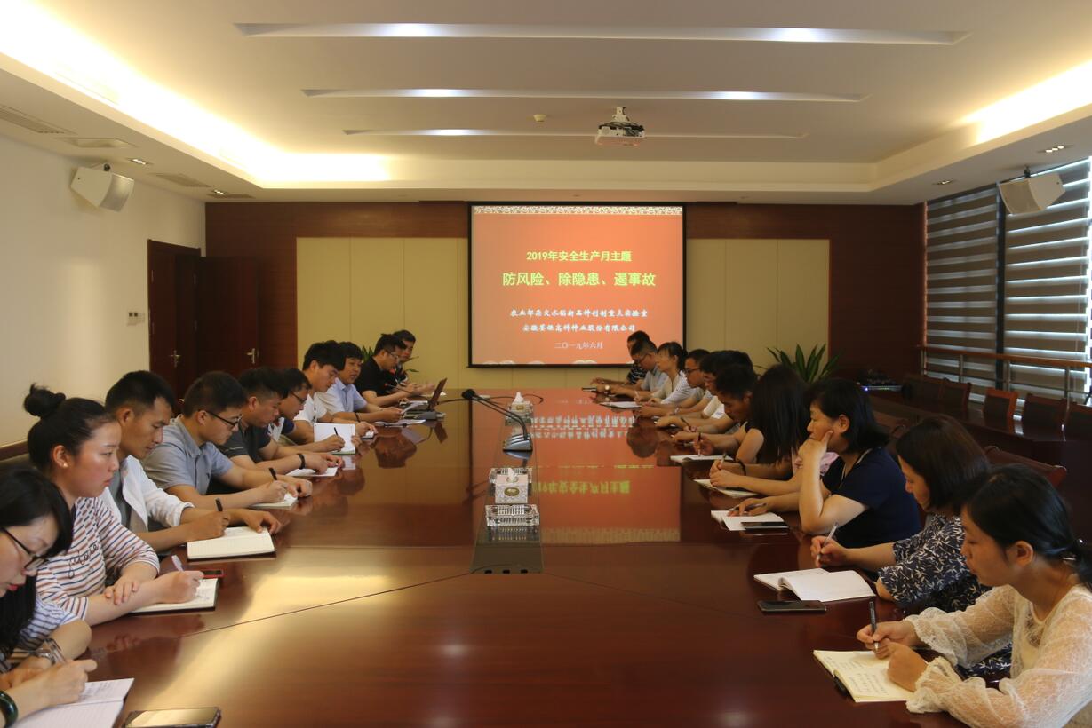 ??? 2019年6月26日上午,荃銀高科副總經理張從合帶領公司科研部、分子實驗室、質檢部、項目辦和荃銀瓜菜等相關部門人員開展了以“防風險、除隱患、遏事故”為主題的“安全生產月”活動。