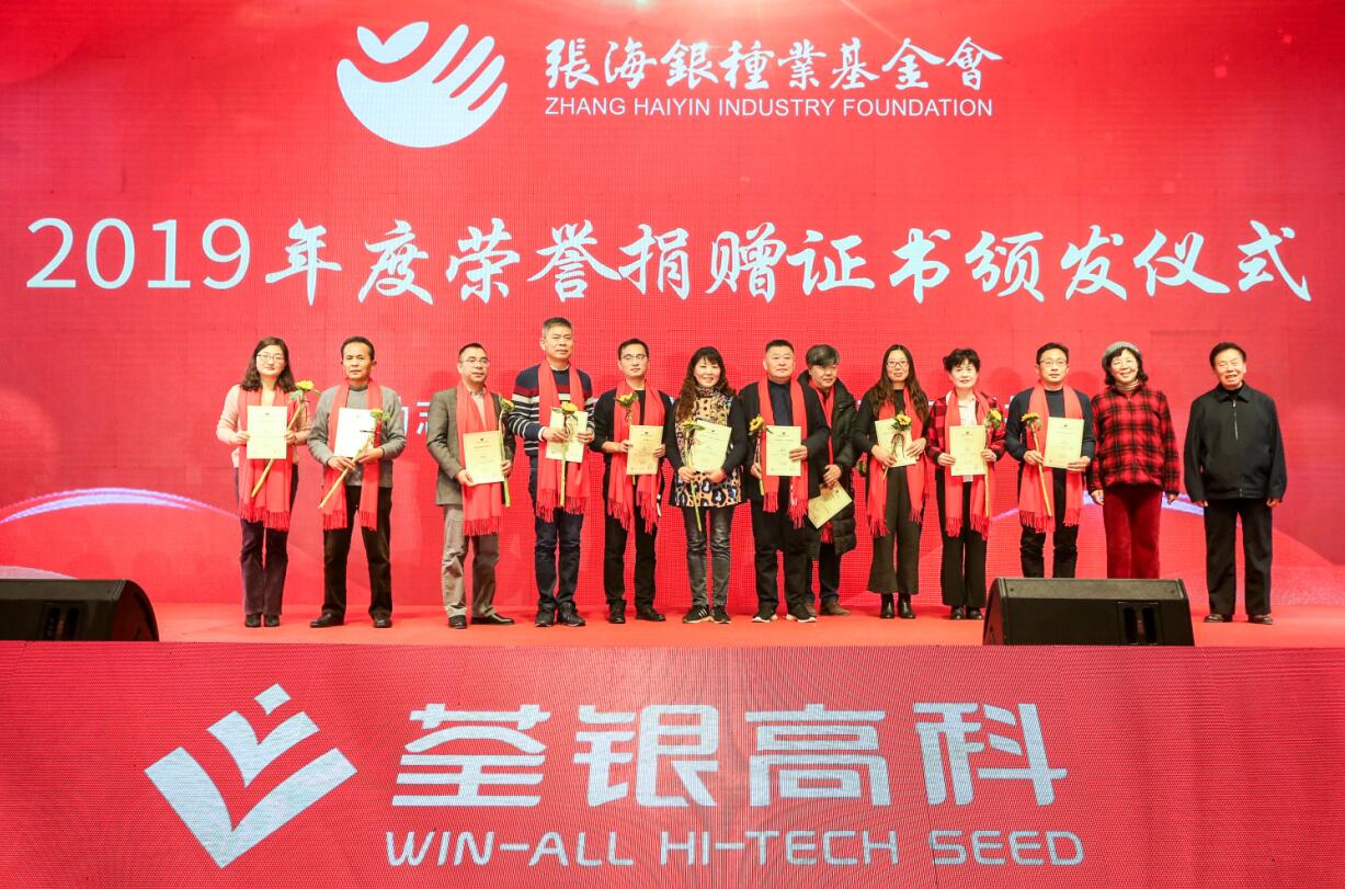 ? ? 公益無界,大愛無疆。會議還進行了安徽張海銀種業基金會頒發捐贈證書儀式,鼓勵更多人踐行公益,傳遞社會大愛力量。會議現場,荃銀高科員工及有關愛心人士向安徽張海銀種業基金會捐贈共計40.78萬元,用于激勵為中國種業發展作出突出貢獻的集體和個人,以及助學公益項目和慈善事業,助力公益,薪火相傳。